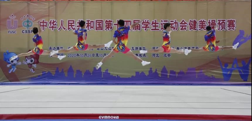10月30日,2020年中华人民共和国第十四届学生运动会健美操预赛在河北省唐山九江体育中心完美谢幕。来自全国24个省的37所大学、47所中学的40支代表队360余名运动员,经过为期5天的激烈角逐,山西、江西、北京等省(自治区、直辖市)的18支代表队晋级2021年青岛学运会健美操项目决赛。