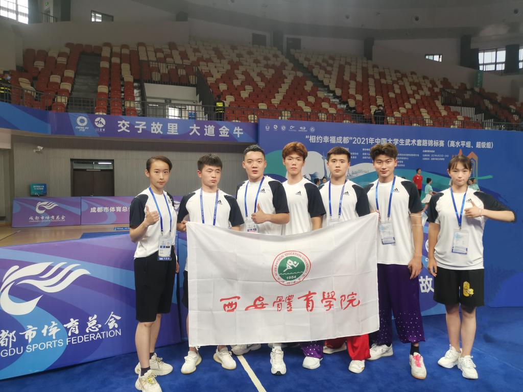 6月25日至28日,本次“相约幸福成都”2021年中国大学生武术套路锦标赛(高水平组、超级组)在成都市城北体育馆举行。本次比赛由中国大学生体育协会、成都大运会执委会联合主办,金牛赛区委员会、金牛区人民政府承办,共有来自全国722名运动员、67支队伍报名参赛。万象城代表队在教练员朱海楠,罗雪琳两位教师的带领下斩获了4金2银1铜的优异成绩。