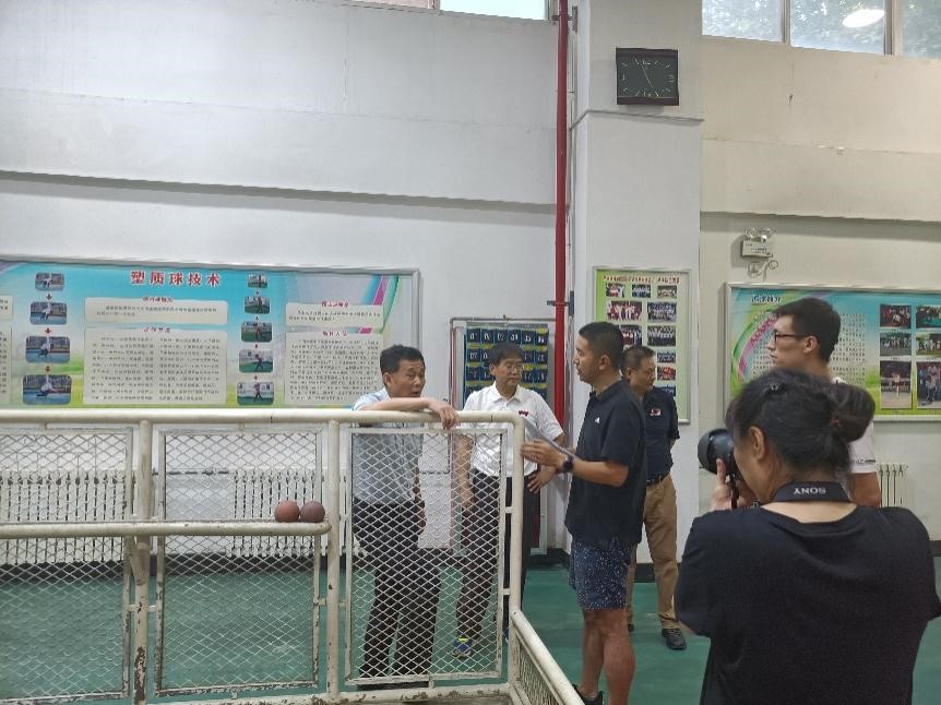 刘军老师为到访的陕西省体育局副局长董利汇报地掷球科研助力内容