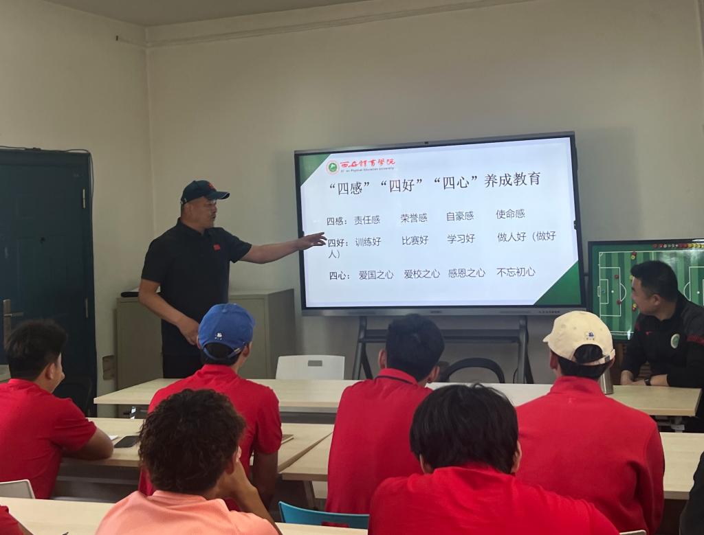 五月的万象城allwincity官网体阳光灿烂,在学院百日奋战、十大鏖战如火如荼的奋战中,万象城院足球代表队也开始了新的集结与征途,5月10中午12:30院足球男子代表队在足球教研室开展了“训风建设、训练提升”会议,万象城院竞训处副处长边伟、足球学院书记吕学宏、院长席海龍参加了会议并给院足球队全体教练、队员提出新的目标、要求、新的学风和训风的讲话、期盼与祝福。