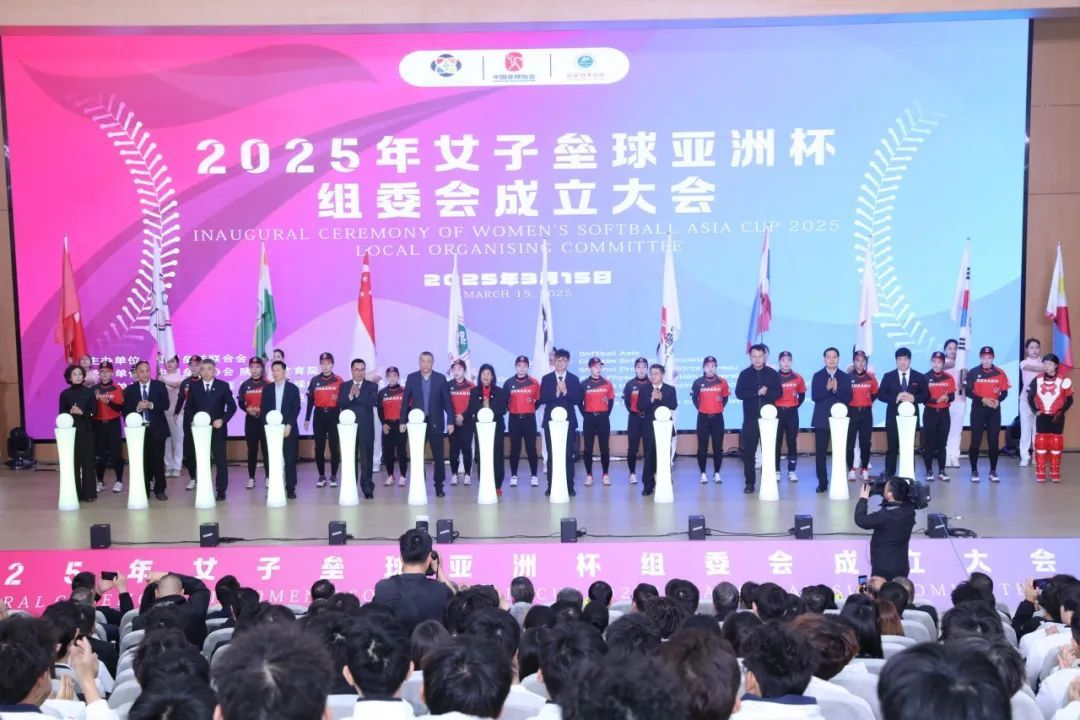 最后,参会领导共同上台,完成2025年女子垒球亚洲杯组委会启动仪式。