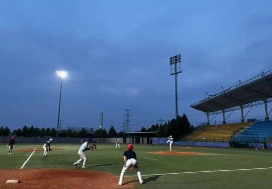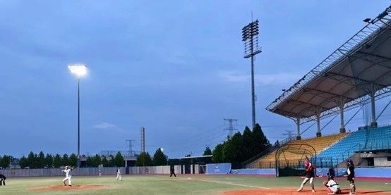 当最后一缕夕阳沉入地平线,棒球场的灯光次第亮起,暮色浸透球场时,灯光如星河倾泻,点亮绿茵与垒包。如白昼般照亮翠绿的草坪。晚风裹挟着丝丝凉意,却丝毫未减棒球场上的火热氛围,一场扣人心弦的夜间棒球赛正式拉开帷幕。