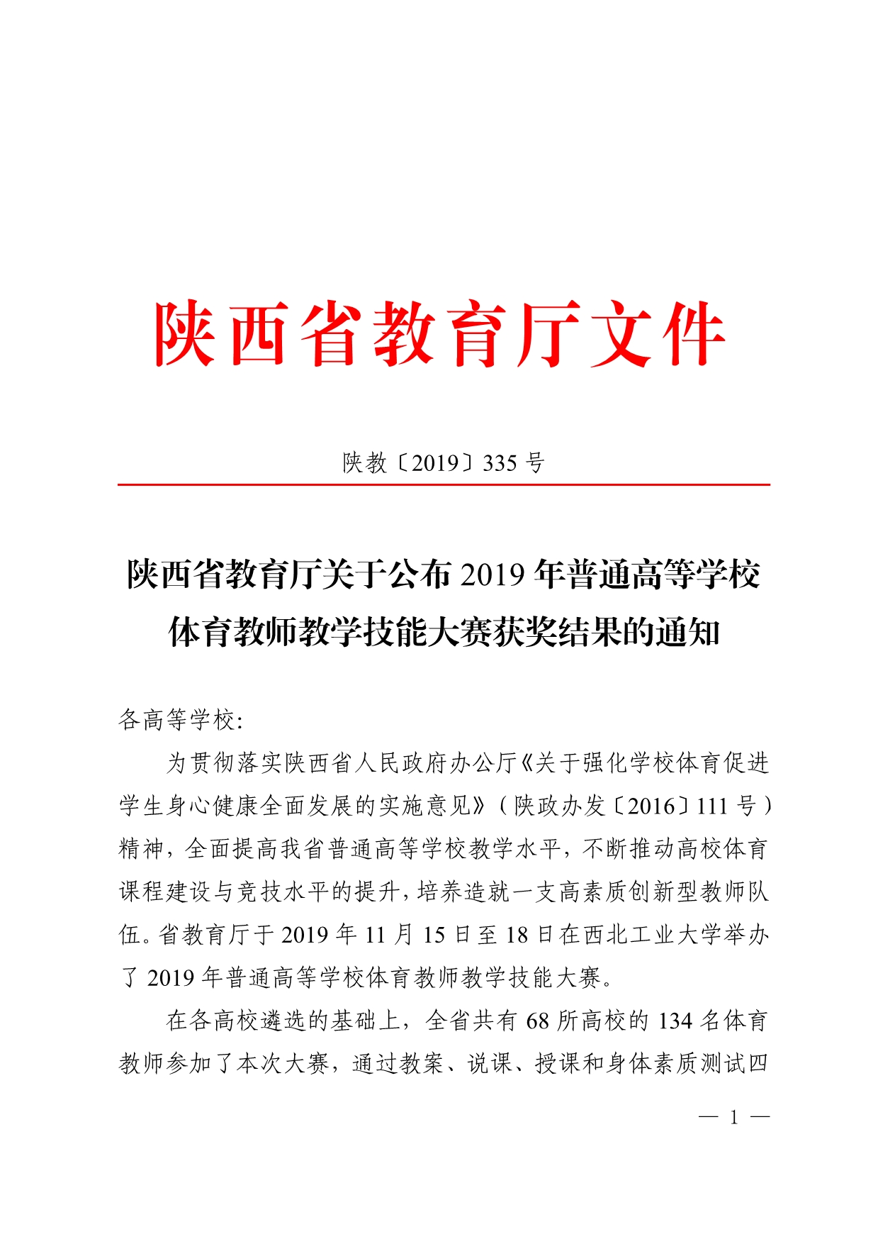 陕西省教育厅关于公布2019年普通高等学校体育教师教学技能大赛获奖结果的通知.pdf