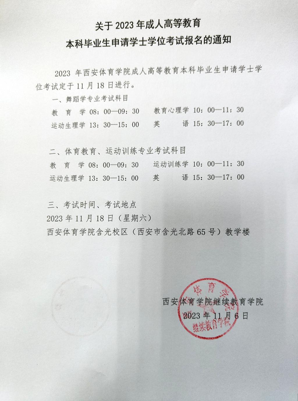 关于2023年成人高等教育本科毕业生申请学士学位考试报名的通知