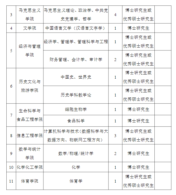 5.所聘学院对审核合格人员实施考察。博士研究生考察分面试(试讲答辩) 及基本资质审查等部分组成,全面考核应聘人员的专业知识、业务能力、工作技能、科研情况及综合素质。硕士研究生考察分笔试、面试(试讲答辩) 及基本资质审查等部分组成,全面考核应聘人员的专业知识、业务能力、工作技能、科研情况及综合素质。 (具体考察时间另行通知)。