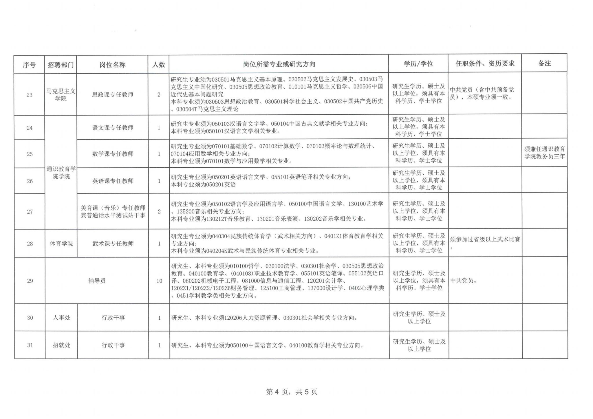 根据学校教育教学及管理工作需要,经学校党委研究,面向社会公开招聘工作人员44人。