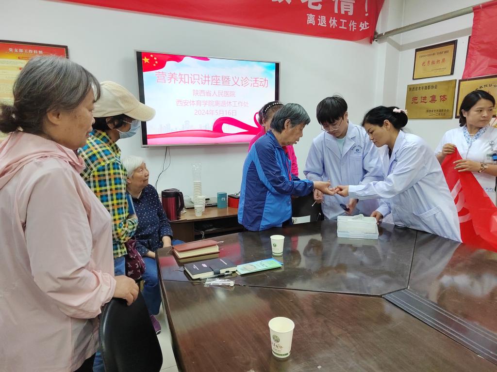 首先,陕西省人民医院营养科主任张英进行了常见老年慢性疾病营养知识讲座,宣传健康生活方式,随后,医院多学科专家现场咨询、指导答疑,现场发放营养膳食宣传手册,并免费提供血糖、血压监测服务。