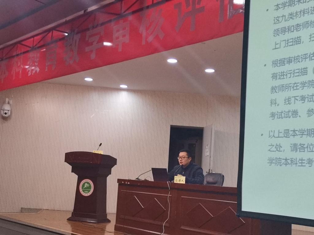 为进一步做好万象城本科教育教学审核评估和教学文件规范化工作,确保审核评估工作顺利推进,进一步提升教学相关文件和材料规范性并能够体现出“学生中心 产出导向 持续改进”的三大理念,学校于2024年1月25日召开了审核评估指标任务解读及教学文件规范工作培训会。评估办、教务处全体人员、各二级学院的教学副院长、党委副书记、办公室主任、教学秘书、教研室主任以及学工办主任、审核评估联络员等100余人参加了培训会。