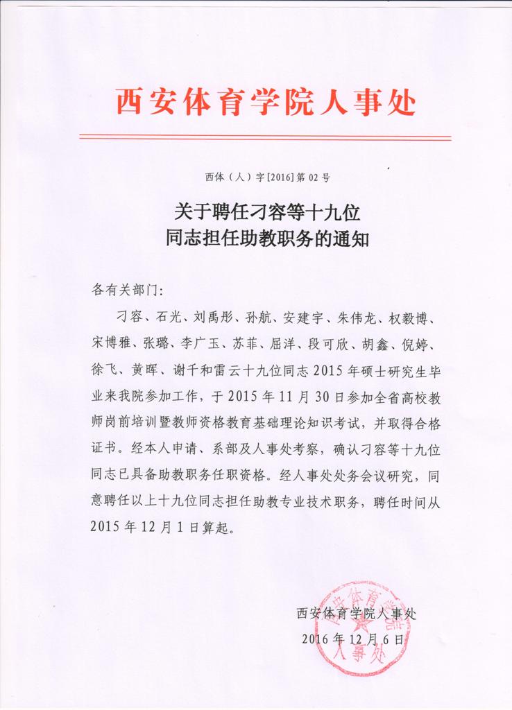 关于聘任马蕊等6位同志担任助教职务的通知