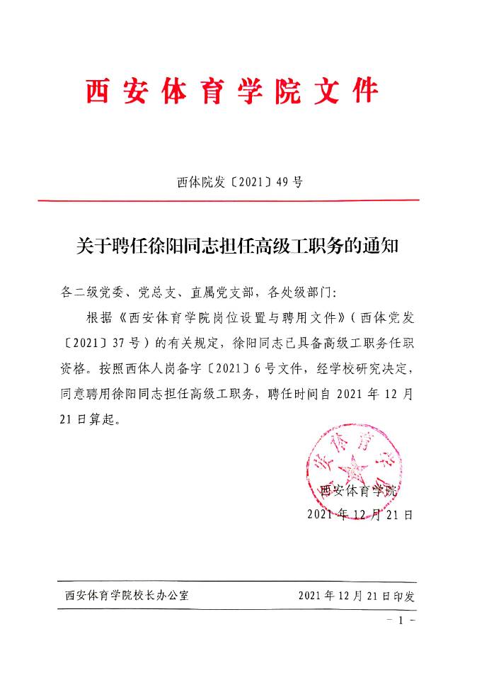 关于聘任徐阳同志担任高级工职务的通知
