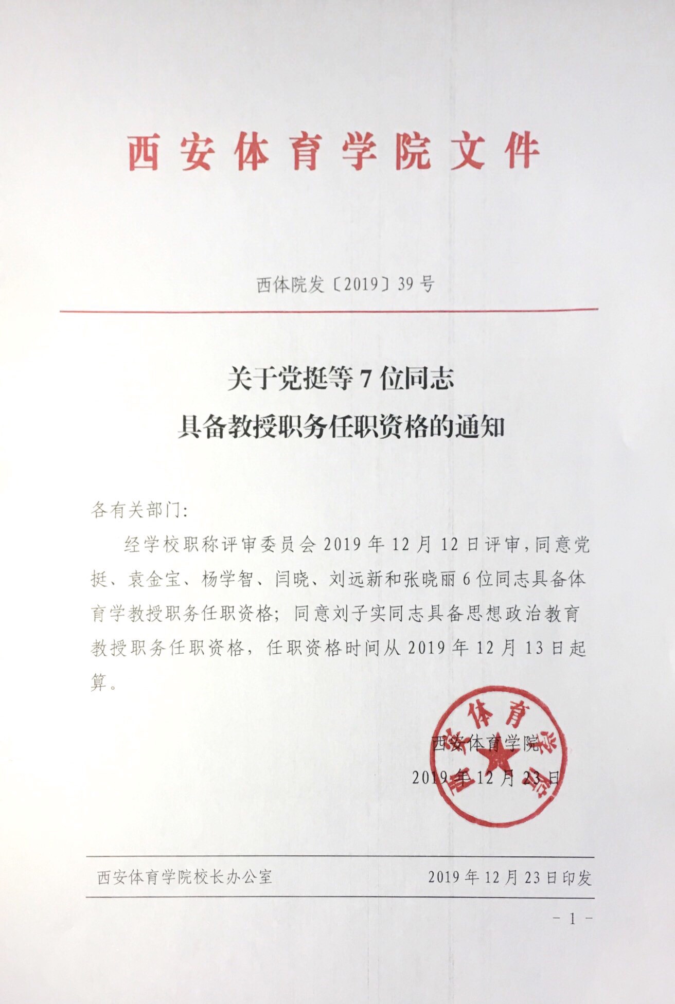 关于党挺等7位同志具备教授职务任职资格的通知
