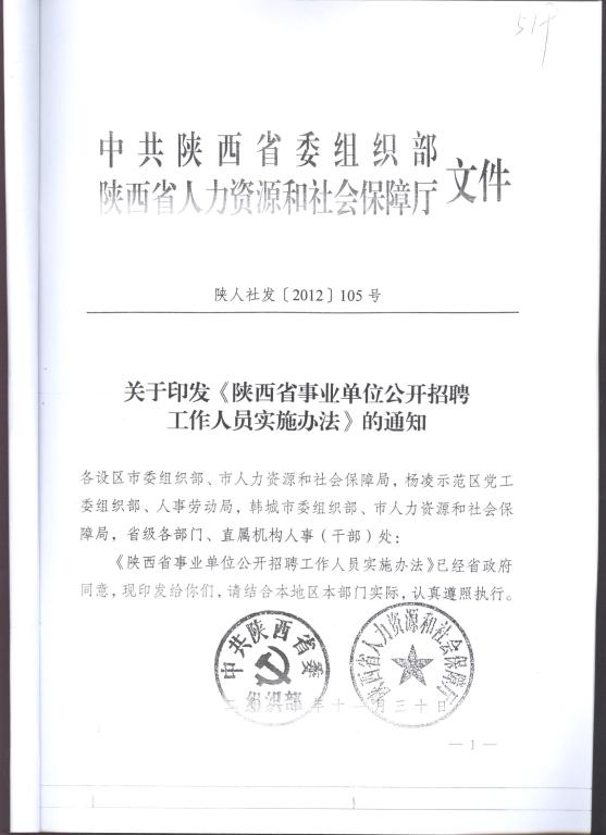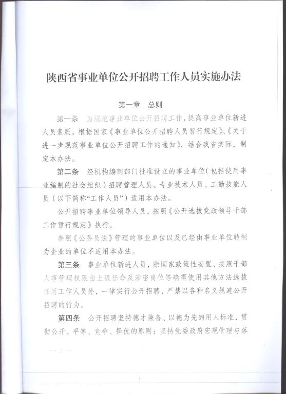 陕西省事业单位公开招聘工作人员实施办法