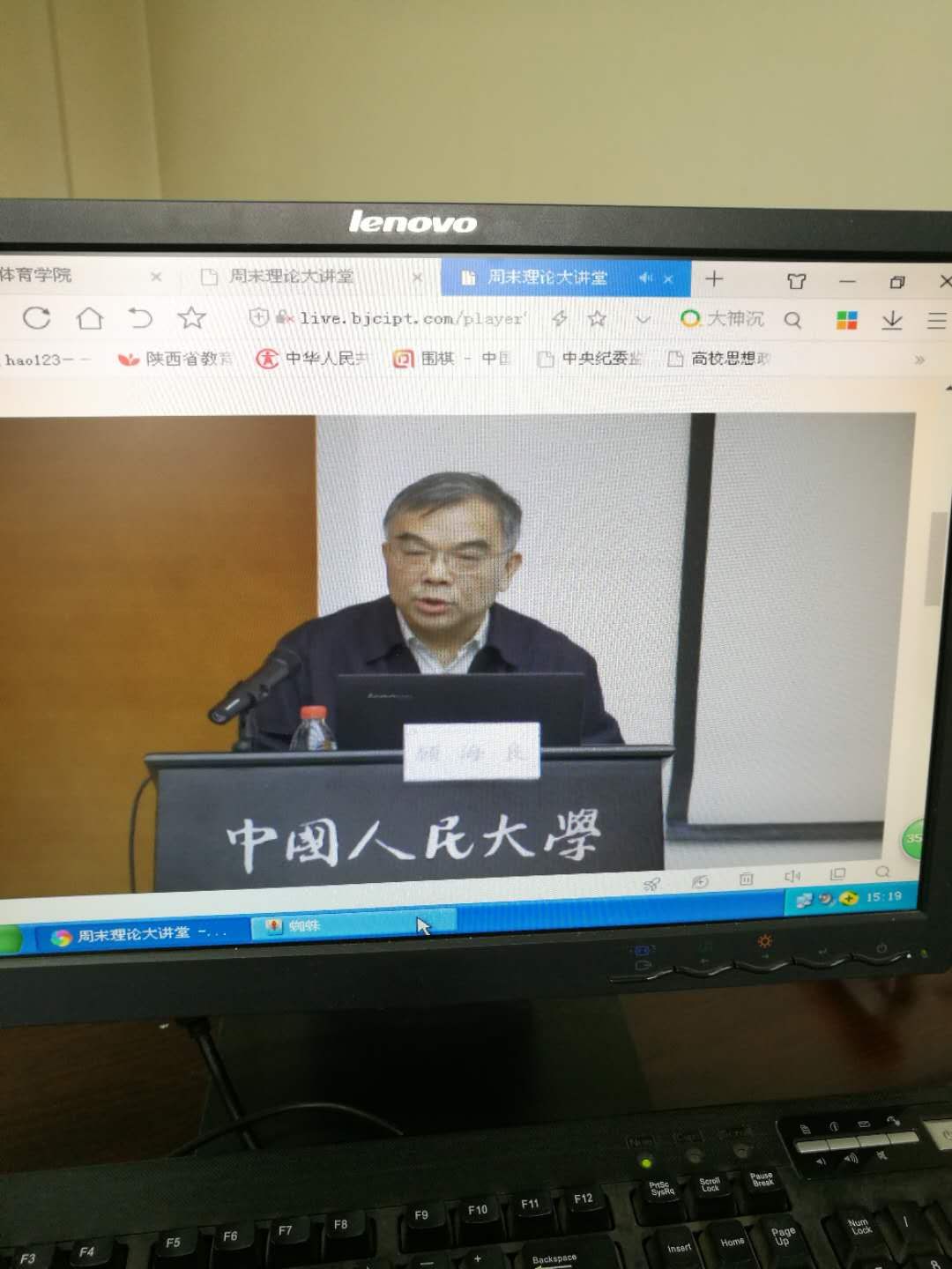 4月12日下午,思政部根据教育部及中共陕西省委教育工委的安排和要求,组织我部全体教师收看“周末理论大讲堂”网络直播培训课程,此次培训学习思政课主任秋实作前期的宣传动员和精心安排,并全程参与指导。并强调这次培训任务重大,是每位思政课教师的必修课程,积极引导教师参与到学习过程当中,充分认识参加理论学习、夯实理论功底的重要意义,将培训内容及效果融入到课堂教学过程当中,不断增强思政课的思想性、理论性和亲和力、针对性。