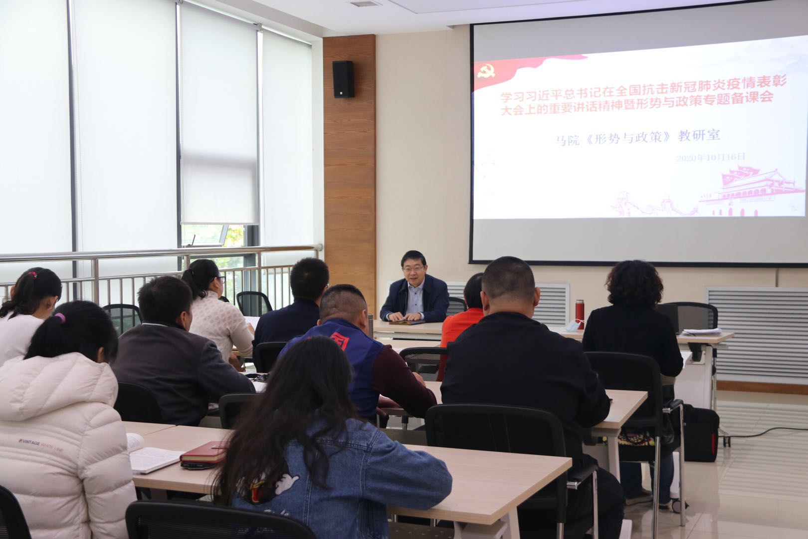 10月16日上午,万象城allwincity官网马院“形势与政策”教研室组织授课教师召开了“读懂抗疫大考的中国答卷”专题备课会。校党委副书记刘子实出席会议并讲话。会议由“形势与政策”教研室主任刘小容主持。