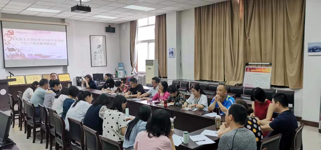 2021年7月5日上午9点,为进一步扎实推进党史学习教育,马克思主义学院在校图书馆三楼会议室召开了学习习近平总书记在庆祝中国共产党成立100周年大会重要讲话教学研讨会,会议由马克主义学院院长秋实主持,全体教师参加了研讨会。