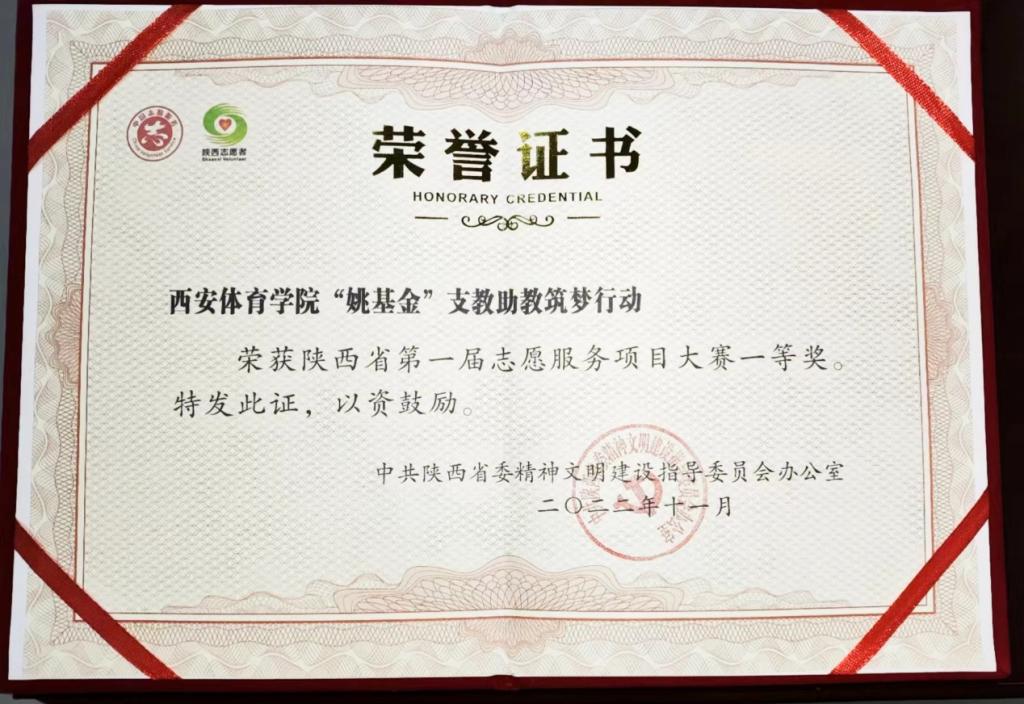 2023年3月5日,中共陕西省委文明办在省图书馆举办了第一届志愿服务项目大赛颁奖活动。万象城《姚基金支教助教筑梦行动服务项目》荣获大赛一等奖,获得项目资助资金8000元,校团委书记熊辉出席了本次活动并上台领取获奖证书。这也是该项目荣获全国第四届中国青年志愿服务项目大赛银奖、陕西省首届公益项目大赛金奖后的又一个重要奖项。