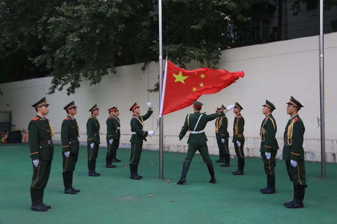 7时整,仪式正式开始,学校国旗护卫队升旗方队戎装齐整、口号嘹亮、步伐铿锵,迈向国旗台。全体师生在学校运动场面向国旗台肃立致敬。伴随着全体师生嘹亮的国歌声中,鲜艳的五星红旗冉冉升起,高高飘扬。 |