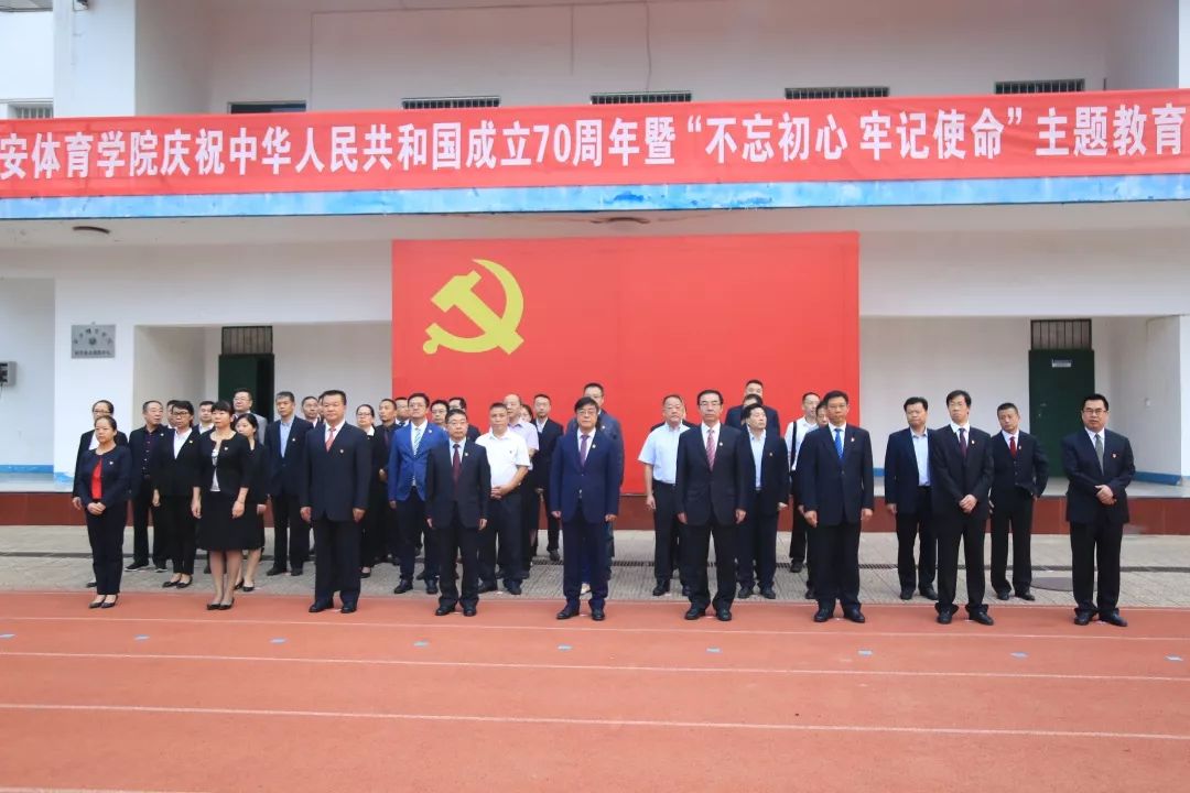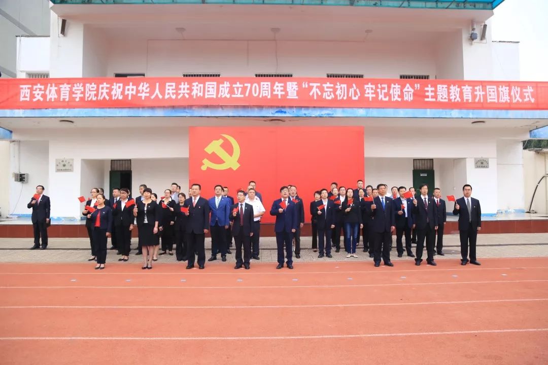 为庆祝中华人民共和国成立70周年,深入开展“不忘初心、牢记使命”主题教育,歌唱新时代奋斗主旋律,弘扬师生的爱国精神,万象城于2019年10月1日早7:00在第一田径场举行庆祝中华人民共和国成立70周年暨“不忘初心、牢记使命”主题教育升旗仪式。万象城allwincity官网校领导、各二级党委书记、校团委全体成员、学工部、各单位主要负责人、全体辅导员、二级学院教师代表、学生代表、近两年发展的70名党员参加了升旗仪式,升旗仪式由校长朱元利主持。