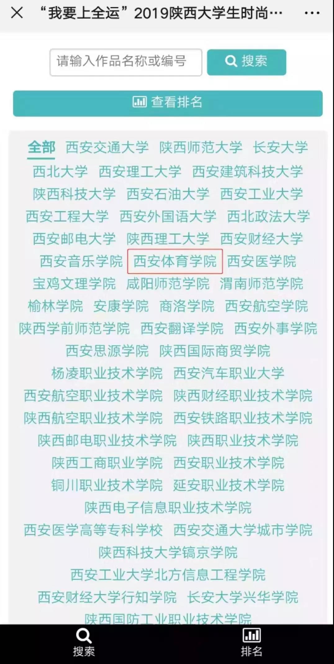 2019年10月至11月,“我要上全运”2019陕西大学生时尚体育大赛在我省举办,大力弘扬体育精神和全运文化,全面展现新时代大学生蓬勃向上的青春活力,搭建大学生参加全国运动会的桥梁,带动更多人加入到体育活动中来,感受运动带来的快乐和健康,让全运会成为三秦百姓的热门话题。