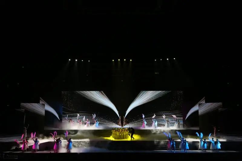 晚会上用历史发现最早刻有中国字样的和尊融合高科技技术作为启动装置,随着一股清泉的汇入,十四运正式进入一周年倒计时。
