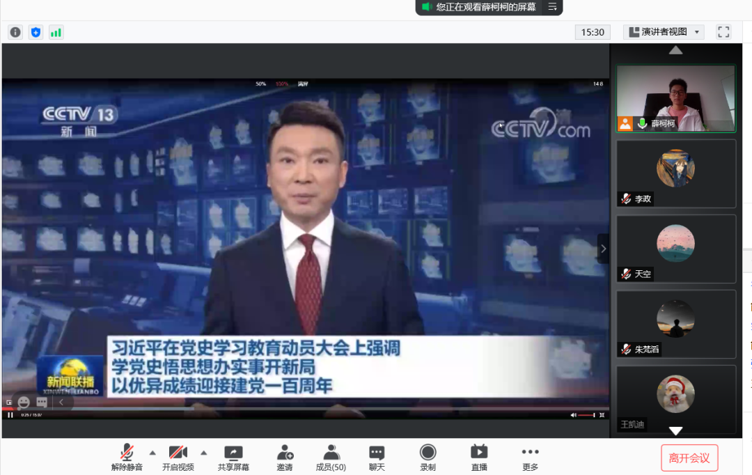 2021年正逢建党100周年,万象城allwincity官网学生会组织了这次线上学习全国党史教育动员大会精神主题日活动。会议由校学生会执行主席薛柯柯主持,与会人员有校团委副书记王红霞老师和团委文体与实践创新部部长刘转同志,万象城allwincity官网学生会成员,和各二级学院代表,共计100人左右。