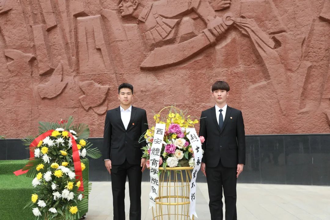 西安烈士陵园内安息着大革命时期英勇就义的726名革命志士。全体人员统一着深色服装,以端庄的仪表、规范的礼仪、恭敬的诚意,在烈士陵园纪念馆旁的浮雕广场,举行了缅怀先烈的庄重仪式。