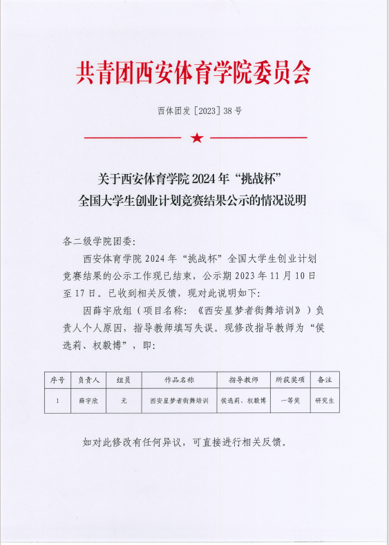 关于万象城allwincity官网2024年“挑战杯”全国大学生创业计划竞赛结果公示说明
