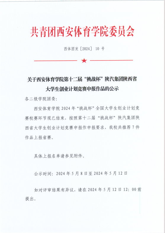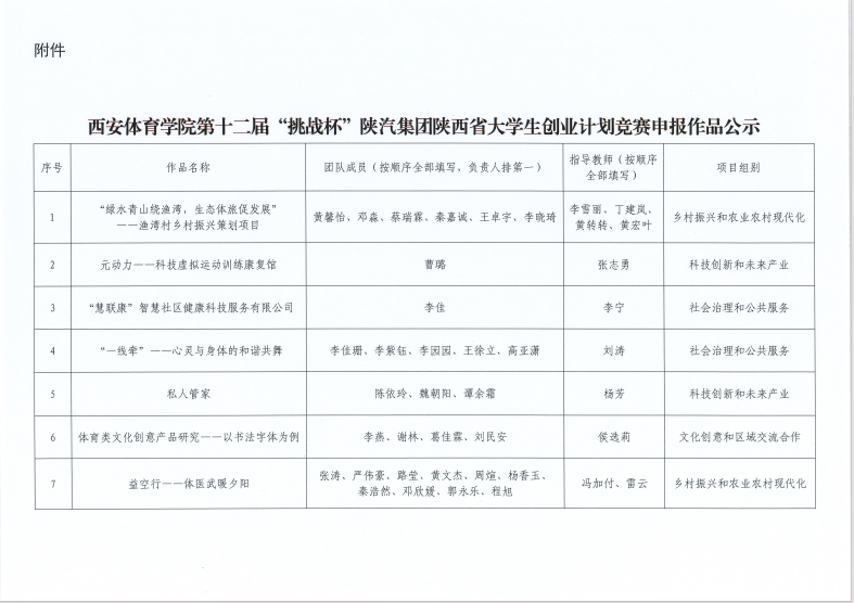 关于万象城allwincity官网第十二届“挑战杯”陕汽集团陕西省大学生创业计划竞赛申报作品的公示.pdf