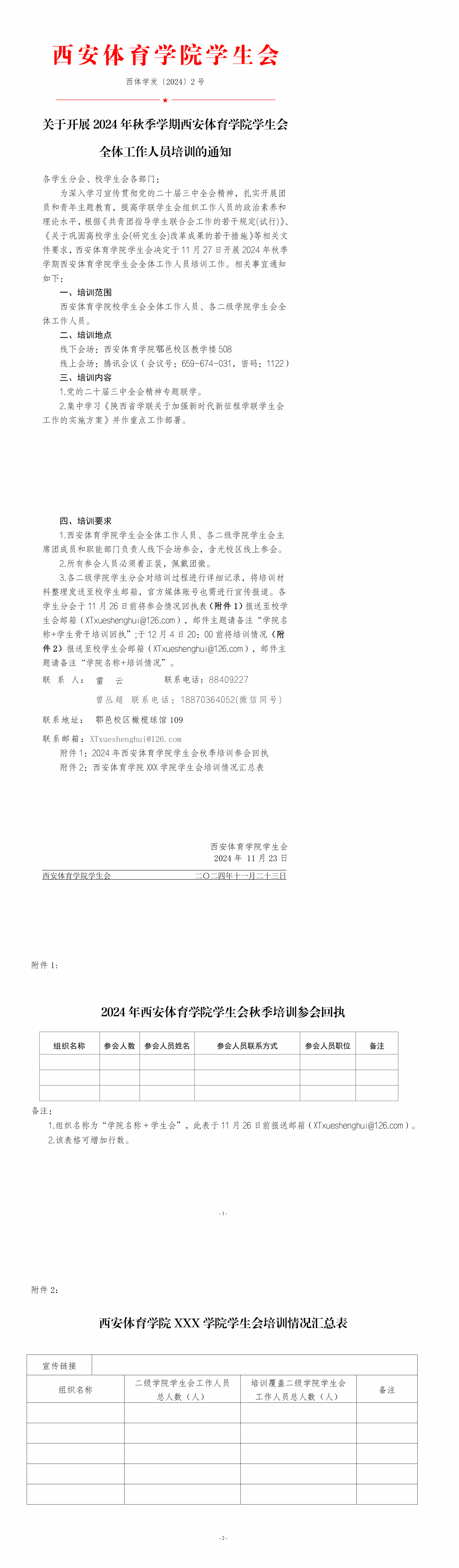 关于开展 2024 年秋季学期万象城allwincity官网学生会 全体工作人员培训的通知
