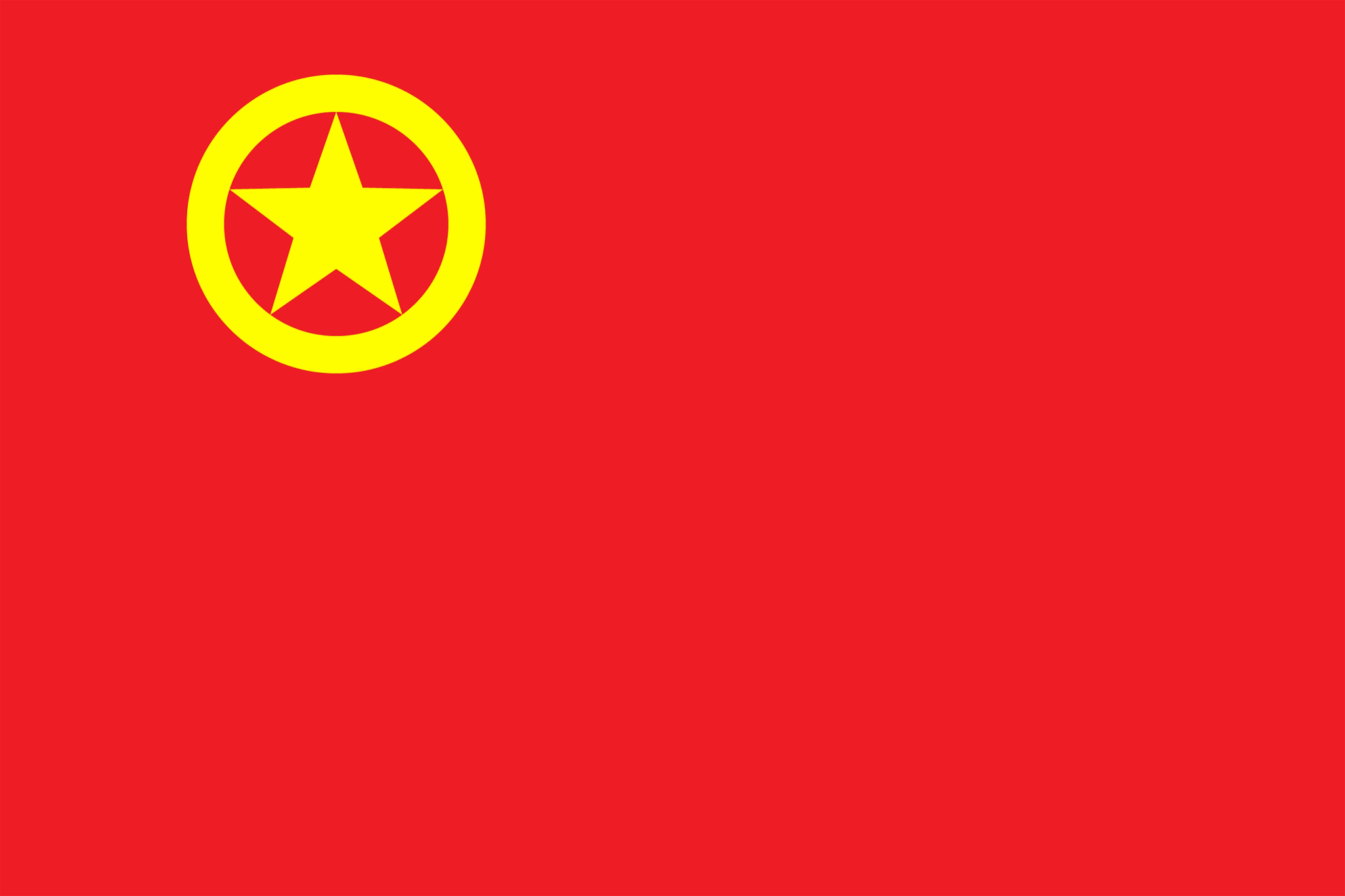 中国共产主义青年团团旗旗面为红色,象征革命胜利;左上角缀黄色五角星,周围环绕黄色圆圈,象征中国青年一代紧密团结在中国共产党周围。