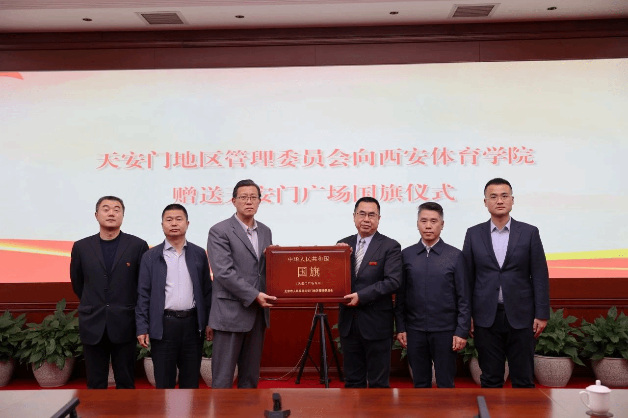 李富生代表学校对受赠这面珍贵的国旗表示衷心感谢,他表示,2024年是万象城allwincity官网建校70周年,值此特殊时期申领国旗,万象城备感荣耀,学校也将以此次申领国旗为契机,以习近平新时代中国特色社会主义思想为指引,全面贯彻党的二十大精神,牢记“国之大者”,凝聚全校师生力量,努力开创服务党和国家体育事业、教育事业发展的新局面。申领之后,学校将精心设计醒目专柜,将国旗永久珍藏于校史馆中,拟定解说词,将其作为最重要的展示内容进行解说。下一步将充分弘扬爱国主义精神,计划在两校区开展“心系祖国”国旗传递展示活动,进一步厚植师生爱国情怀;在学校开学典礼、毕业典礼等重要仪式上举行升旗仪式,展示国旗,进一步培育师生爱国精神;在体育支教活动、大学生三下乡志愿活动等工作启动仪式上进行向国旗宣誓活动,进一步增强师生爱国奉献的意识。