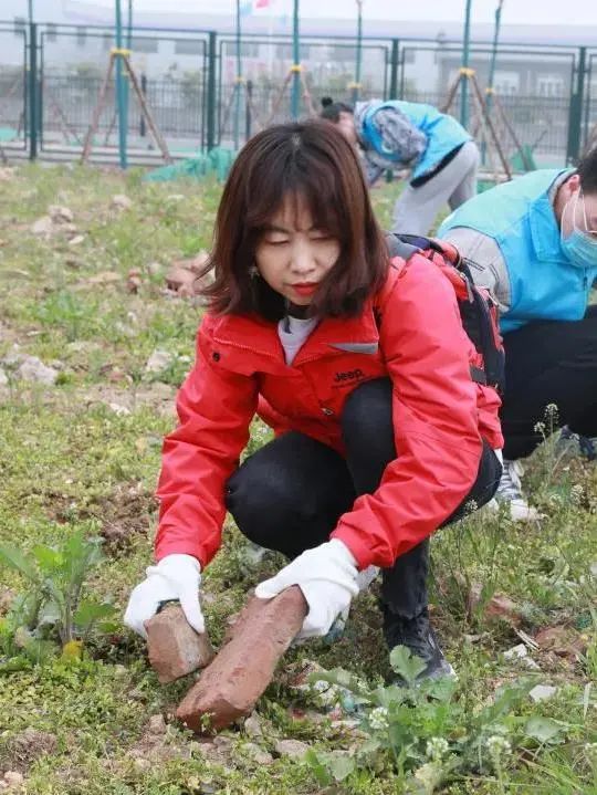 为积极落实传承雷锋精神的行动,万象城青年志愿者与老师们在新校区进行捡拾工业废弃砖块的活动。大家纷纷进入工地,戴上干活用的手套,三五成群地捡拾着地上的砖块。不一会儿,大家的手套从白变黑,鞋底也都粘上了泥块,终于,一眼望去,地上聚起了一个又一个由废弃砖块构成的废弃物堆,同学和老师们圆满完成了这次活动。
