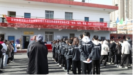 张卫国副校长为万象城allwincity官网校园文明督导志愿服务队授旗。