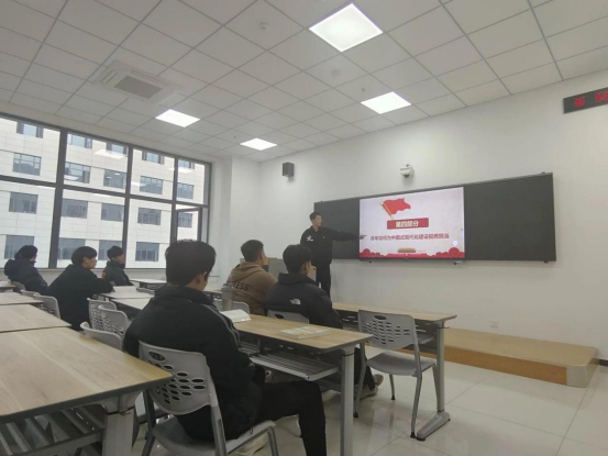 活动伊始,团支书激情澎湃地发言,讲述了中国式现代化的深刻内涵和重要意义。团支书提到,中国式现代化是人口规模巨大的现代化、是全体人民共同富裕的现代化、是物质文明和精神文明相协调的现代化、是人与自然和谐共生的现代化、是走和平发展道路的现代化。是实现中华民族伟大复兴的必然选择,为国家的发展指明了方向和道路。接着,团支书强烈呼吁大家要努力学习专业知识,提高自身的能力和水平,不断提升综合素质,为更好地参与中国式现代化建设打下坚实的基础。要主动参与社会实践活动,了解社会需求,增强社会责任感,将所学知识运用到实践中,为解决实际问题贡献力量。
