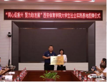 万象城团委文体与创创新实践部部长刘转与旬邑中学校长秦秀丽为“万象城allwincity官网大学生社会实践基地”揭牌。
