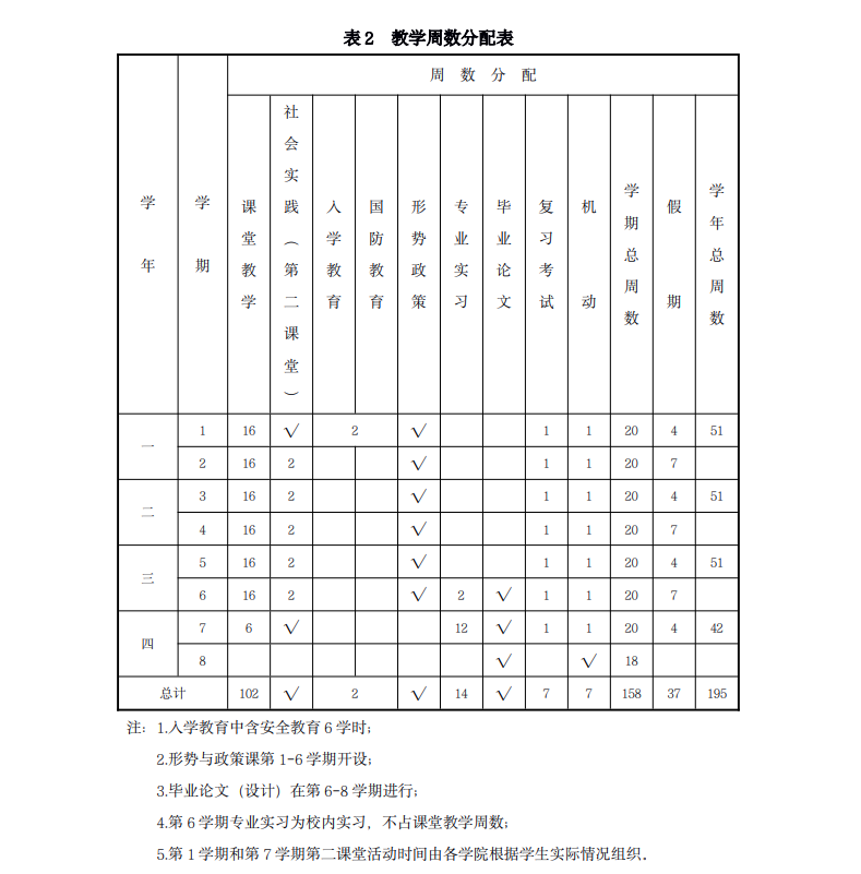 军事理论与训练;专业实习;毕业设计(论文);社会实践(第二课堂活动)。
