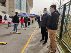 2022年3月14日14点,在鄠邑区疫情防控指挥部和万象城allwincity官网鄠邑校区管委会的统一领导和安排下,体育经济与管理学院院长杨涛、2021级辅导员霍达积极组织我院全体在校学生按照规定时间准时在橄榄球馆门口进行了全员集中核酸检测。