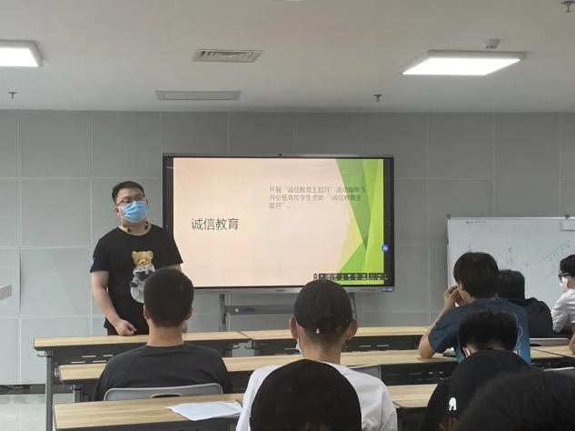 诚信是中华民族的传统美德,是社会主义核心价值观的重要内容。讲诚信、树诚信、践诚信,是新时代大学生成长的必修课,成才的必由路。为助力诚信校园建设,取得良好的教育效果。2022年5月21日晚七点于棒球馆103教室,2021级体育经济与管理学院鄠邑校区全体学生,参加了学院组织的高校学生资助“诚信教育主题月”活动。该活动由辅导员霍达老师与张星宇老师组织安排。