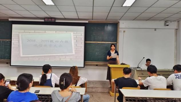 四六级考试即将到来,为了加强大学生的诚信教育,严肃考风考纪,提高同学们的诚信意识。体育经济与管理学院于2021年6月9日下午14:20在教学楼202教室召开四六级诚信考试动员大会,17、18、19级200余名同学参加了会议。