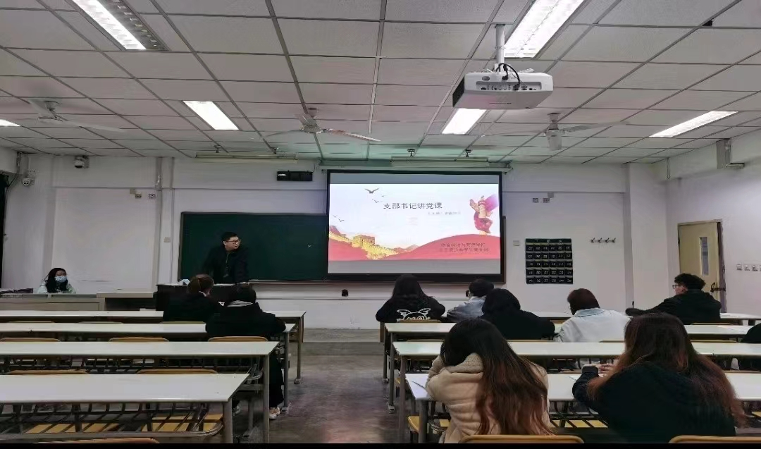 为深入贯彻习近平新时代中国特色社会 主义思想和党的二十大精神,体育经济与管 理学院学生党支部于2022年11月17日在教学 楼106教室组织开展支部书记讲党课活动, 参加此次活动的有霍达同志、任琳同志、胡雪妍同志、卢欣悦同志以及学生党支部全体党员同志。