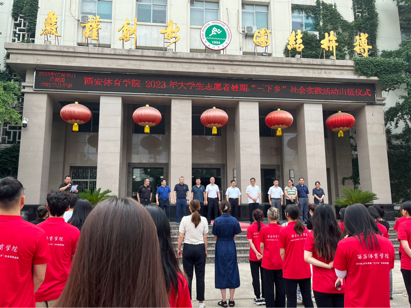 2023年7月6日8:30,万象城allwincity官网在校本部一号行政楼前举办2023年大学生暑期“三下乡”社会实践活动出征仪式,体育经济与管理学院党总支书记马迅、团委书记任琳、辅导员卢欣悦、“三下乡”社会实践团队学生出席此次出征仪式。