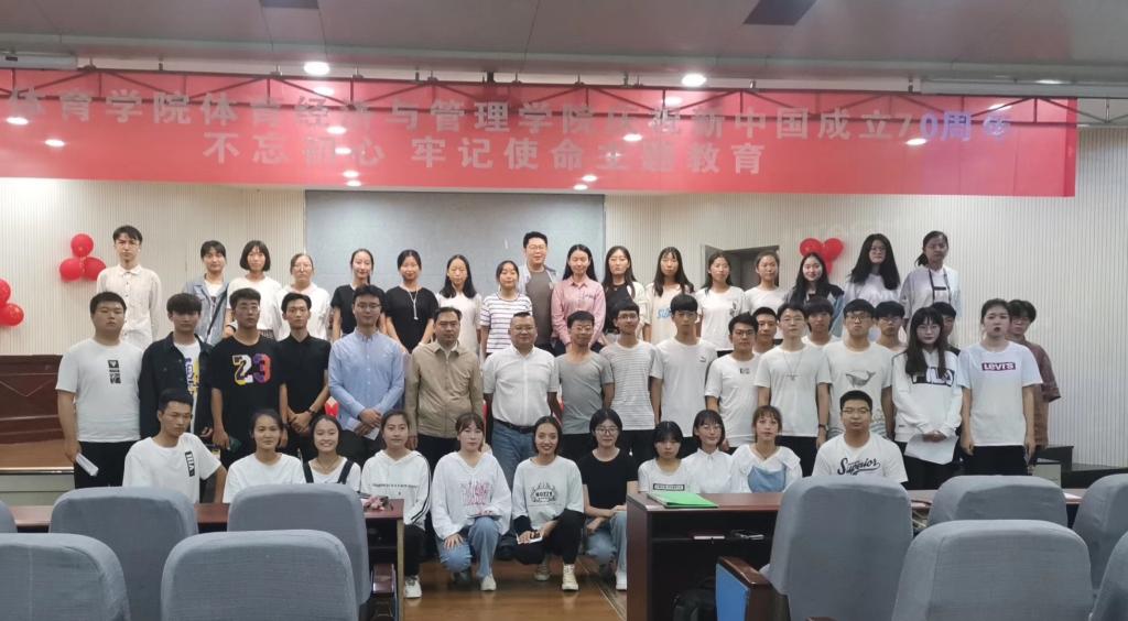 为迎接新中国成立70周年,深入学习贯彻习近平新时代中国特色社会主义思想,2019年9月28日晚,体育经济与管理学院在一楼报告厅开展“喜迎建国70周年”读书分享会。学院党总支书记马迅、副院长院长杨涛教授、各年级辅导员李广玉、霍达、胡雪妍老师及2017级、2018级、2019级全体学生参加了本次读书会。