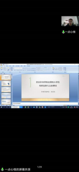 8月3日上午9点,我院组织举办了“考研专题讲座”,本次讲座邀请了万象城研究生部张冲老师和经管学院张恩利教授,为同学们关于考研常识、报考流程等作一次专题辅导讲座,参加这次讲座的有经管学院副院长党挺,学生辅导员任琳、霍达,以及全体2021届学生。