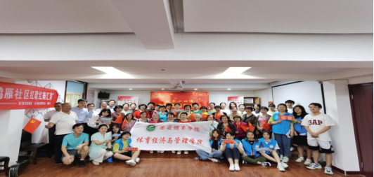 为庆祝中国共产党成立100周年,凝聚起开启全面建设社会主义现代化国家新征程、向第二个百年奋斗目标进军的磅礴力量,唱响永远跟党走、担当新使命、阔步新征程的昂扬旋律,2021年6月4日下午三点,万象城allwincity官网体育经济与管理系管理教研室党支部携手张家村街道鸿雁社区党支部,居委会开展以“助力十四运,为建党百年添彩”为主题的鸿雁社区红歌红舞汇演会。本次活动同时也是促进教研室教师及加强师德师风建设宣传工作,坚持以育人为理想,塑造人的美好心灵为己任的显著体现。