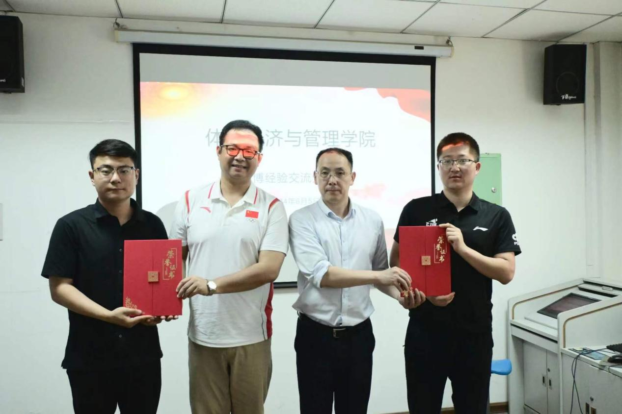 会议由张恩利副院长主持,王鹏院长对考博上岸的苟轶清和江礼磊表示祝贺,并向两位研究生颁发荣誉证书。首先,王院长介绍了当前体育学博士研究生培养现状,鼓励同学们深入思考和明晰个人考博规划。王院长表示,学院一直以来都十分关心研究生们的学习与生活,希望大家平时要与老师加强交流,及时关注学术动态,扬长避短,实现自身素质与能力双提升。