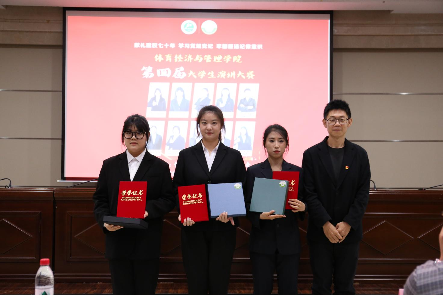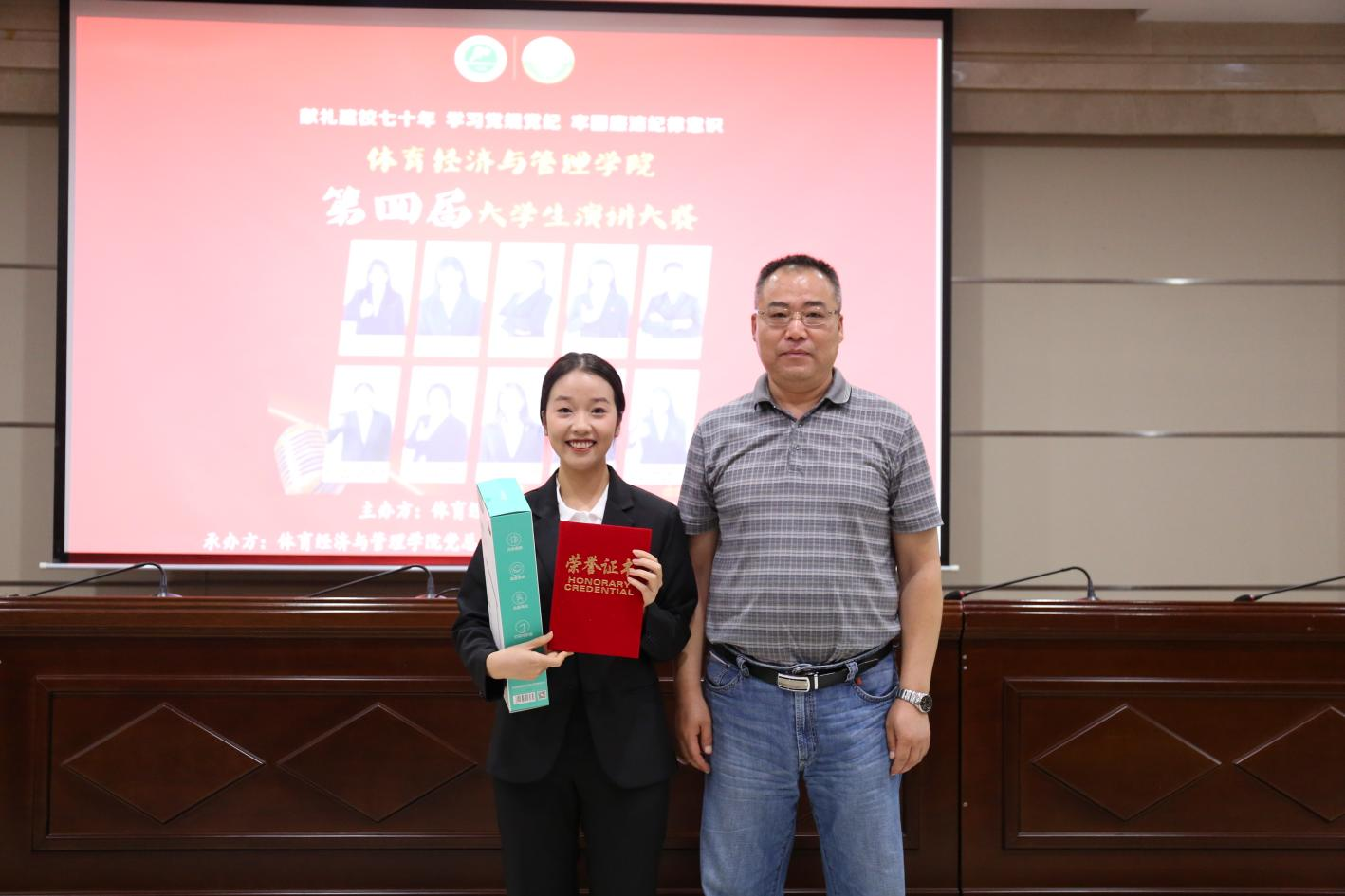 体育经济与管理学院学生党支部书记霍达为三等奖获得者颁奖