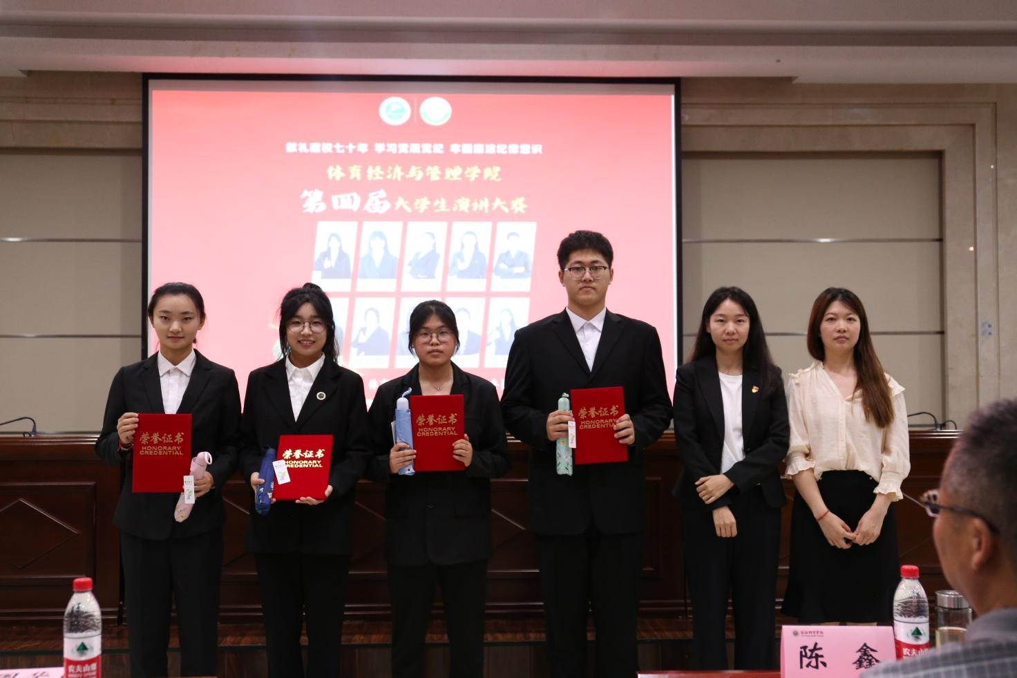 经过评委组最终的打分,王梦怡获得一等奖,白彦烨,刘诗欢获得二等奖,王嘉雯,王晓雯,孔敏悦获得三等奖,惠钰琳,袁乾皓,李晨歌,杨佩茹获得优秀奖。至此,本次经管学院微党课大赛圆满落幕。