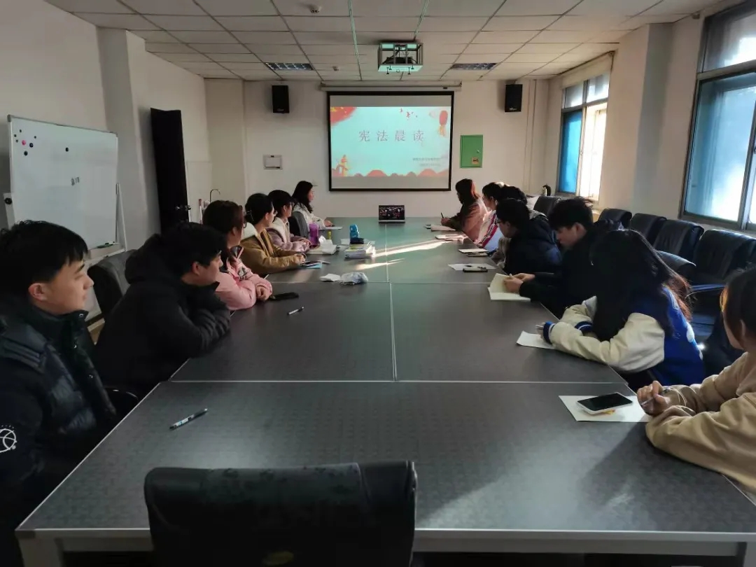 2021年12月3日,体育经济与管理学院全体同学在本部校区实验楼513和鄠邑校区同时开展了主题为“弘扬宪法精神,厚植爱国主义情怀”的宪法晨读活动,拉开了“宪法宣传周”系列活动的帷幕。