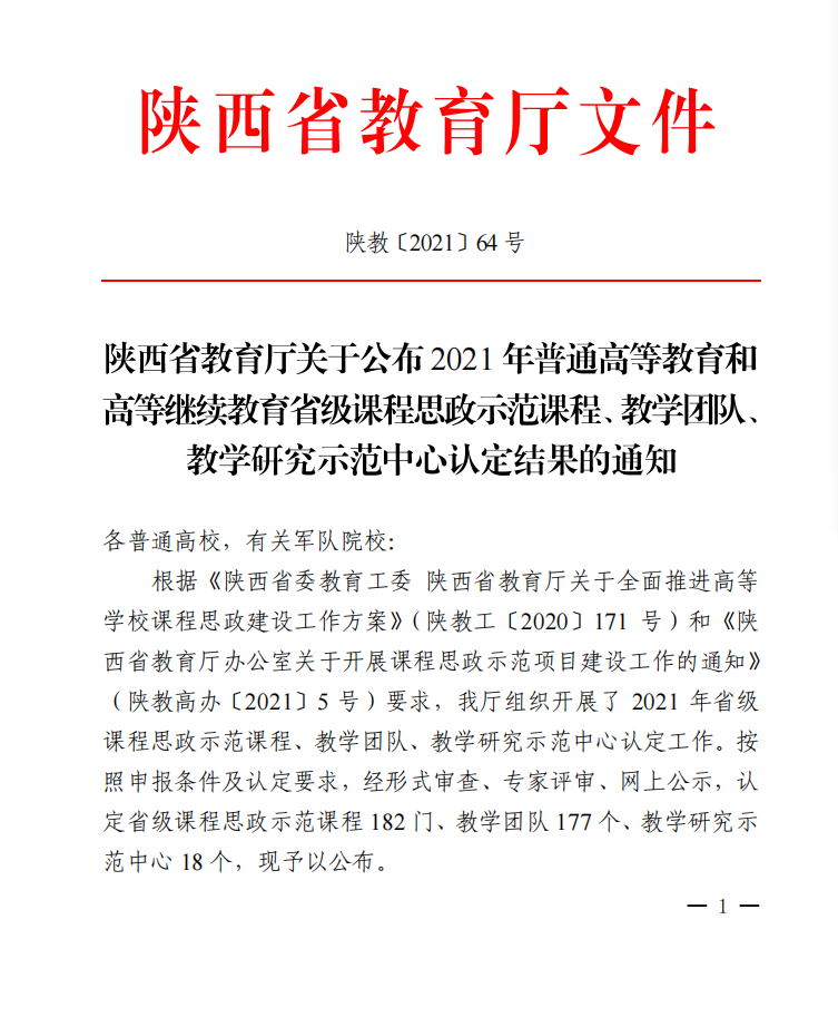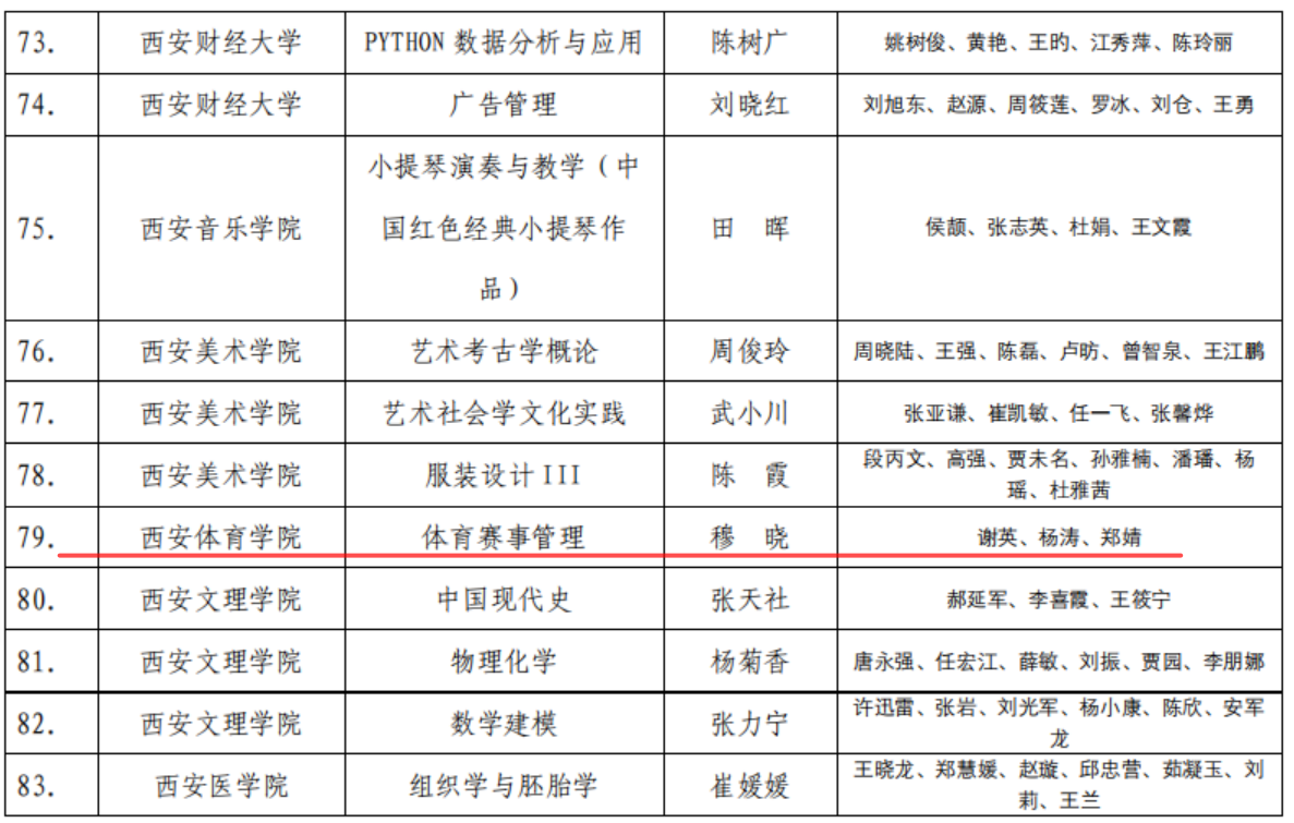 近日,根据《陕西省委教育工委 陕西省教育厅关于全面推进高等学校课程思政建设工作方案》(陕教工〔2020〕171号)和《陕西省教育厅办公室关于开展课程思政示范项目建设工作的通知》(陕教高办〔2021〕5号)的要求,陕西省教育厅组织开展了2021年省级课程思政示范课程、教学团队、教学研究示范中心的认定工作。经过严格的申报、审查、专家评审和网上公示,万象城allwincity官网体育经济与管理学院穆晓老师主持的《体育赛事管理》课程荣幸地被评为省级“课程思政”示范课程,同时,该课程的教学团队也被评为“课程思政”示范教学团队。