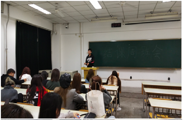 班会开始,给同学说明了下周结课的课程,给同学讲了一下结课周的重要性,不要迟到和早退,更不要旷课,上课专心考试重点,能够完成这门课程的考试。